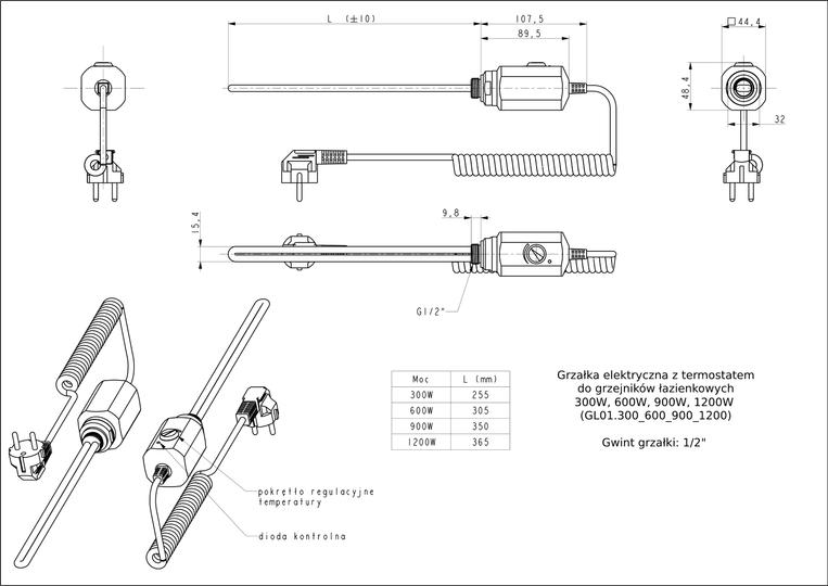 LÄNGE DES HEIZELEMENTS L (± 10mm)