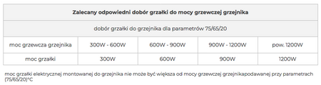 Das Heizelement mit elektronischem Thermostat dient der Wassererhitzung in Badezimmer-Heizkörpern, in Konvektor-Heizungen und in anderen Heizungsanalgen. Es wird ergänzend zur Zentralheizung benutzt, womit es zu einer zusätzlichen Wärmequelle wird (es unterstützt die Wassererhitzung während der Heizungssaison z. B. in Heizkörpern der Zentralheizung). Es kann auch der eigenständigen Erhitzung kleiner Heizungssysteme außerhalb der Saison dienen, z. B. der Badezimmerheizungen. Die Heizelemente können auch in anderen Heizungssystemen eingesetzt werden.
