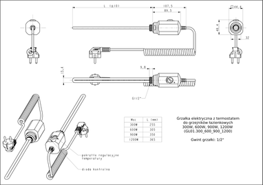 Das Gerät besteht aus einem speziell geformten Heizleiter, einem elektronischen Thermostat, der eine präzise Regelung der Temperatur eines Heizkörpers gewährleistet (Möglichkeit einer Mindesttemperatureinstellung von 13 Grad C, um zu vermeiden, dass Wasser einfriert, ist gegeben) und aus einem Stromversorgunskabel der Klasse I mit einem universellen Stecker. Das Heizelement verfügt über eine thermische Sicherung, die bei einer Überschreitung der max. Temperatur, die Stromversorgung unterbricht. Leuchten der Power-LED signalisiert den Betrieb des Heizelements. Die garantierte hohe Qualität des Geräts wird durch das CE-Zertifikat bestätigt.