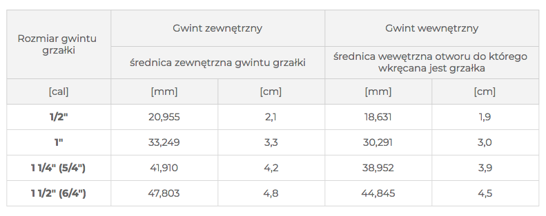 - Średnica króćca przyłączeniowego, powinna być zgodna z wymiarami gwintu modułu grzejnego (dopuszczalne jest stosowanie redukcji);
